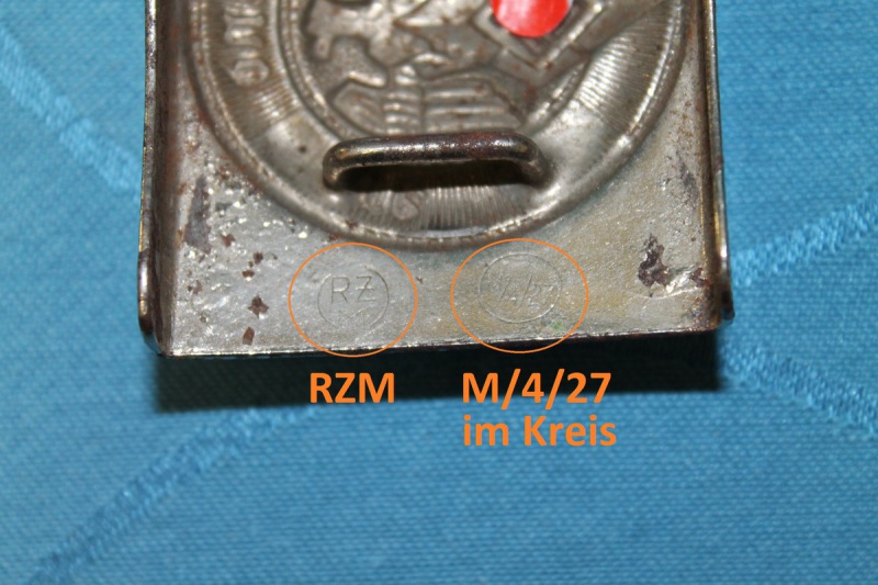HJ Koppelschloss Eisen vernickelt mit RZM und Hersteller