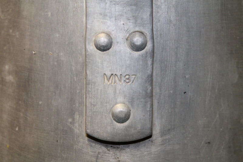 Grosse Aluminium Kanne mit eingeschlagenem Heeres Adler, H.U. (für Heeres Unterkunft) und Hersteller am Henkelansatz, datiert 1937.