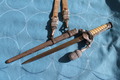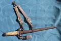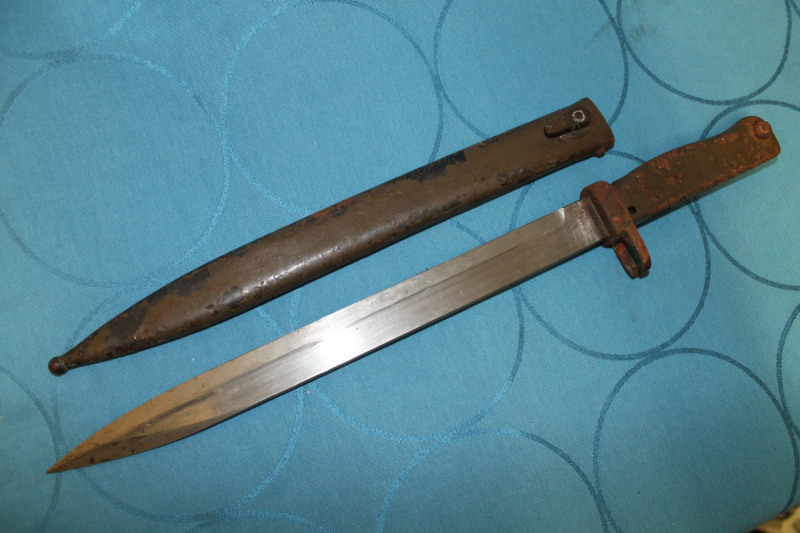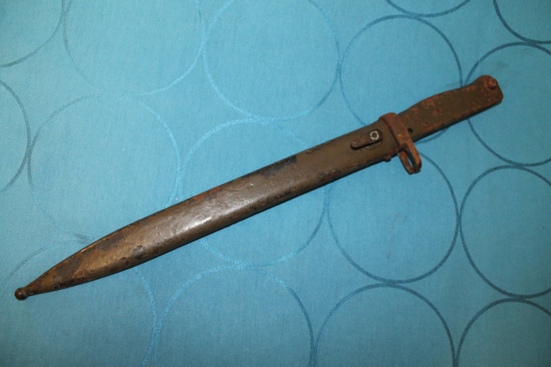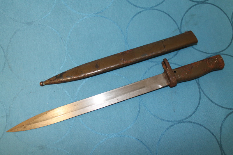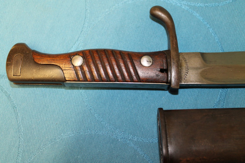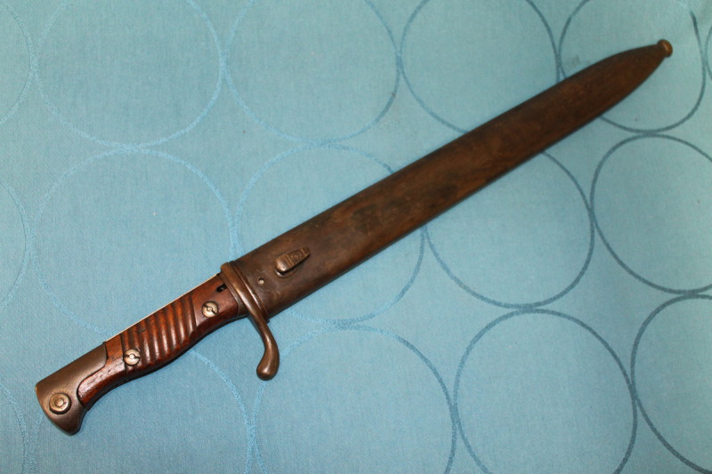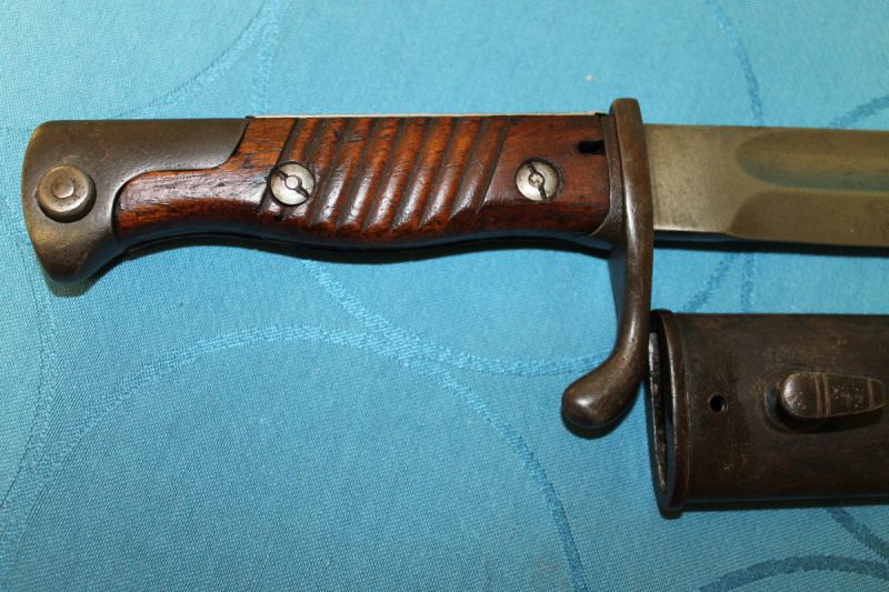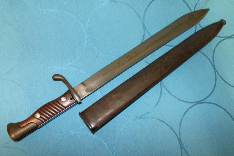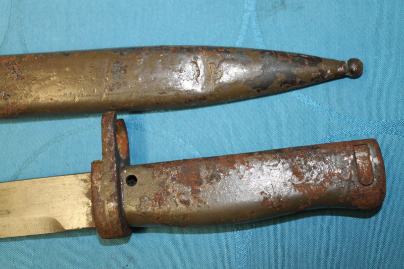 Guter, ungereinigter Zustand wie gefunden, Klinge mit Schleifspuren, Spitze etwas rund, Devise etwas verputzt, Klinge wackelt etwas. Email der Raute bis auf einen winzigen Chip unbeschädigt. Griffschalen unbeschädigt und original vernietet. Belederung der Scheide alt gewechselt, Scheide möglicherweise mal in alter Zeit überlackiert.