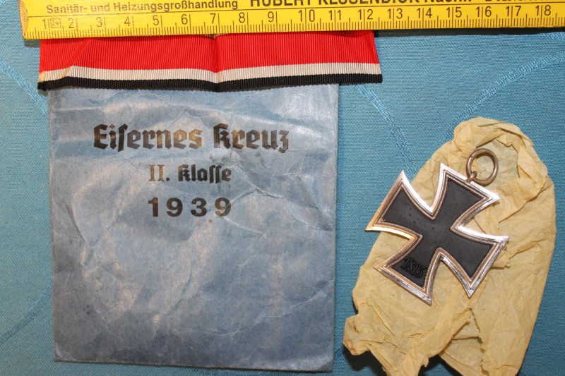 EK II 1914 mit Band, Hersteller Punze KO (für Königliche Münze Abteilung Orden Berlin) im Bandring.