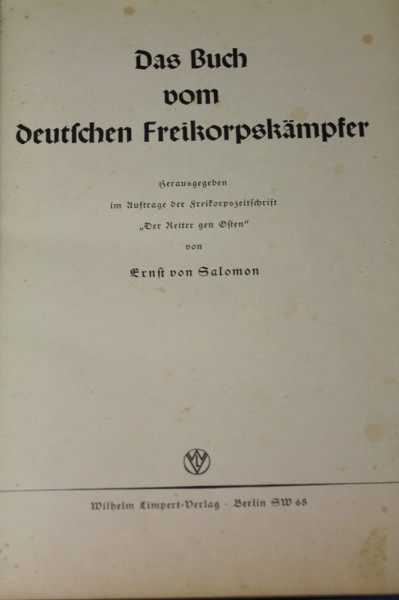 Ernst von Salomon Das Buch vom deutschen Freikorpskämpfer Originalausgabe 1. Auflage 1938