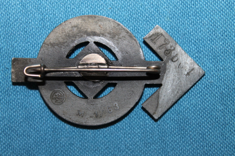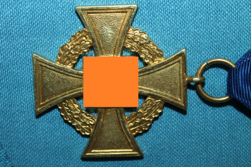 Treudienst Ehrenzeichen 1. Stufe für 40 Jahre, Buntmetall vergoldet, Kanten poliert, schwarz emailliertes Hakenkreuz, am Band.